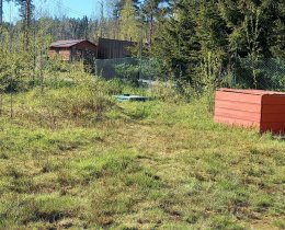 Участок разработан под газон, ровный, чуть с наклоном в сторону поля.