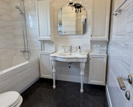 **Внутреннее устройство:** В доме имеется приточная вентиляция, установлены приточные клапана на стенах. Вас ждут три уютные комнаты площадью 16-24м², небольшая постирочная. Для вашего комфорта предусмотрены два санузла: один с душем и биде, другой с ванной.