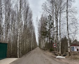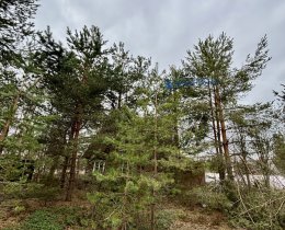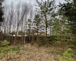 Площадь - 9,84 сотки, располагается на сухой равнинной местности, по краям участка растут живописные сосны, берёзы и небольшие ели. По задней границе участка стоит забор соседа, а соседи справа и слева уже построили свои дома.