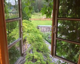 Участок огорожен, полностью разработан, на нем посажены фруктовые и декоративные деревья, кустарники, а так же цветы . Рядом с поселком, в шаговой доступности, расположен грибной лес.