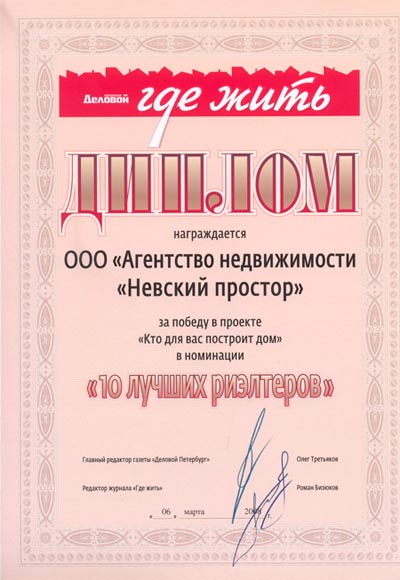 Nevsky Prostor offers real estate services