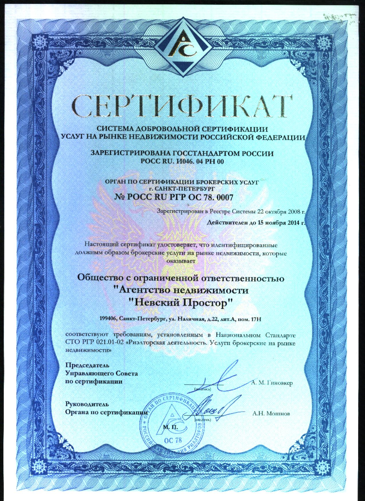 сертификатов в сфере