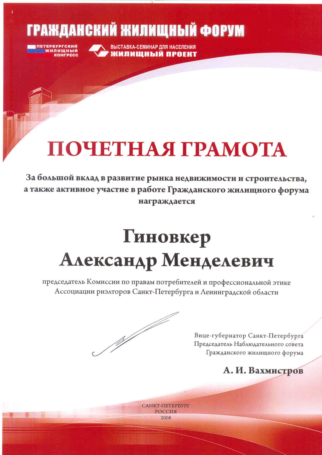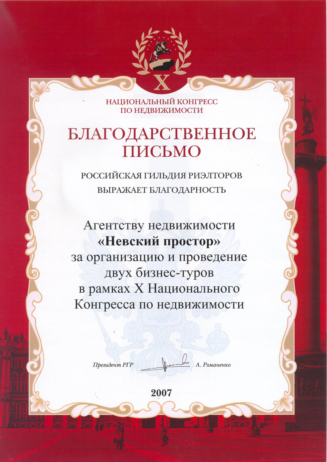 - Diplomas and letters of appreciation from Governor and Vice Governor of St Petersburg, ARStPLR, the Russian Gild of Realtors, Real Estate Institute and etc.