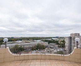 Окна пентхауса обращены практически на все стороны света и открывают широкоформатный вид на город, парк и реку.