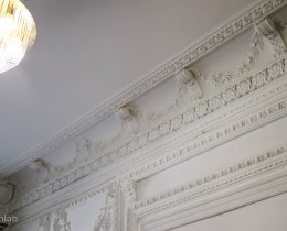 Сохранилась дореволюционная Архитектура (Лепнина на потолке и стенах). В квартиру 2 входа: парадная с 4-ой Красноармейской улицы и подъезд со двора. Очень широкая парадная, есть лифт. Стены дома из кирпича, соседей вообще не слышно. Дом построен в 1908 году, газифицирован.