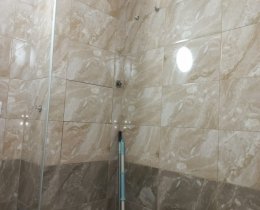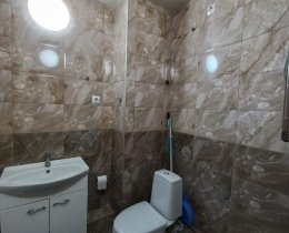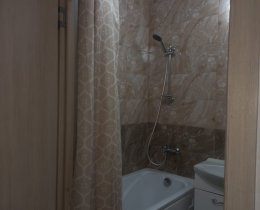 Санузел в кафеле, полноценная ванна (есть крючки и вывод под водонагреватель (горячей воды не бывает 2 недели летом), место 0,8*0,8 для стиральной машинки (вывод воды и канализации), крючки для зеркала).