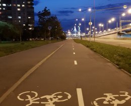 Через дорогу на берегу большая пешеходная и велосипедная прогулочная зона. Много скамеек и качелей посидеть. Летним вечером на берегу невероятно красиво и комфортно. Рядом причал катеров и яхт.