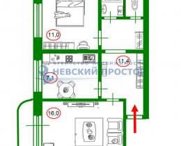 Общая площадь без лоджии 49 м кв. Комнаты 10,5 и 16.