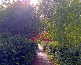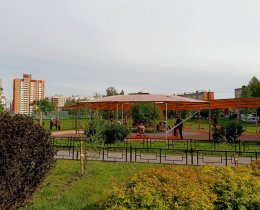 Рядом с домом находится очень красивый двор,с аллеями для прогулок,спортивными и детскими площадками.
