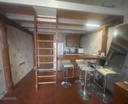 Высокие потолки 3,85 м позволили сделать в комнате антресоль со спальным местом.