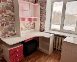 Окна (стеклопакеты) выходят на две стороны- во двор на детскую площадку и на тихую улицу, виден детский садик. Планировка смежно-изолированная. В квартире несколько вместительных стенных шкафов. Санузел раздельный. Дверь в ванную со стороны кухни.