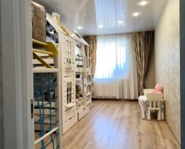 Эта квартира – идеальное решение для семьи, ценящей комфорт и активный образ жизни. Просторные комнаты наполнены естественным светом, создавая атмосферу тепла и благополучия. Здесь хватит места каждому члену семьи для отдыха, учебы и творчества.