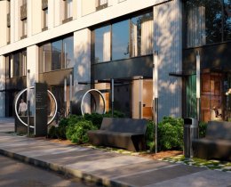 В основе дизайн-концепции общественных пространств черно–белая графика в сочетании с отделочными материалами, имитирующими натуральные текстуры, такие как дерево, мрамор, камень и штукатурка под бетон. Это делает интерьер стильным, эффектным и комфортным. При отделке используются современные материалы повышенной износостойкости: на полу - керамогранит с текстурой мрамора, стены отделаны декоративной штукатуркой и стеновыми HPL панелями с текстурой дерева, а также керамогранитом с текстурой камня или мрамора.