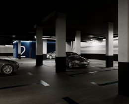 Паркинг на 220 м/мест. Помещение отапливаются в холодное время года и оборудовано системами автоматизированного контроля въезда/выезда, охраной, видеонаблюдением, вентиляцией, пожаротушением и дымоудалением. Спуститься в подземный паркинг на комфортабельном лифте можно прямо со своего этажа.