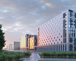 В ЖК планируется пять 12-ти этажных домов и наземный пристроенный паркинг закрытого типа. Все пять домов будут объединены общей прогулочной зоной.