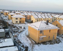 Все дома построены из газобетонных блоков с использованием 100 мм утеплителя для поддержания комфортных температур для проживания. Фасады зданий будут выполнены в едином стиле и облицованы кирпичом песочного цвета.